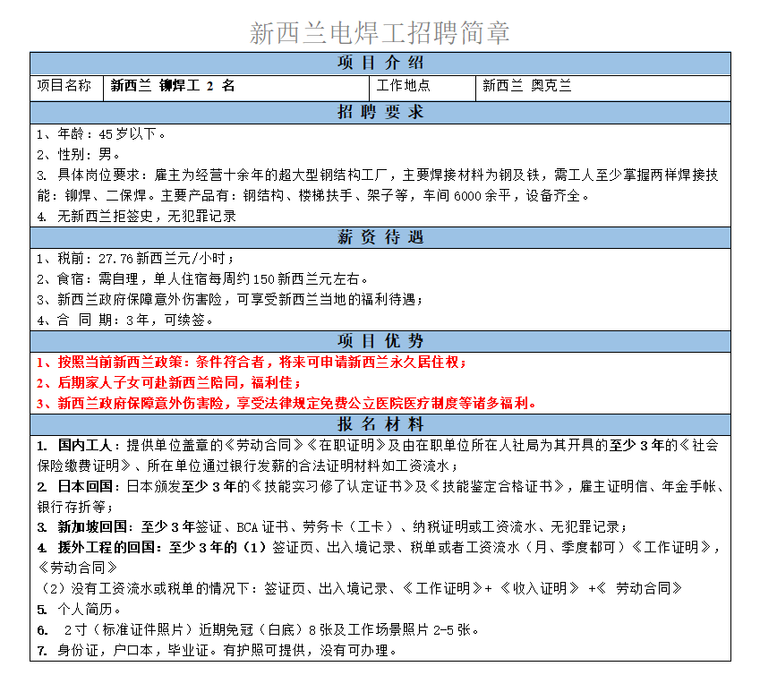 稅前: 27.76新西蘭元/小時(shí);要求45歲以下男性、可熟練焊接鋁合金門(mén)框門(mén)窗。