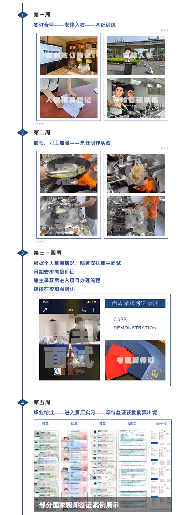 本公司初選?參加培訓?給雇主提供簡歷和項目操作視頻?雇主視頻面試?正式錄用?辦理在留簽證等出國手續?簽證獲批?出國