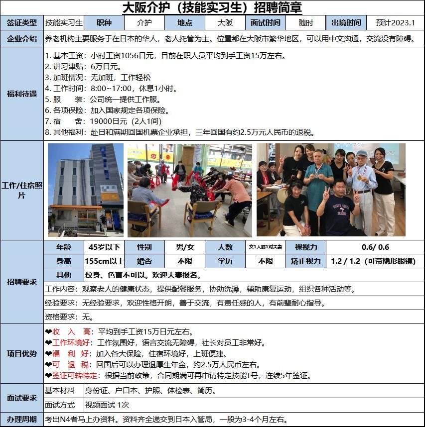 本公司初選?日方視頻/現(xiàn)場(chǎng)面試?正式錄用?辦理在留簽證等出國(guó)手續(xù)?在留通過(guò)后,學(xué)校免費(fèi)培訓(xùn)一周左右?出國(guó)