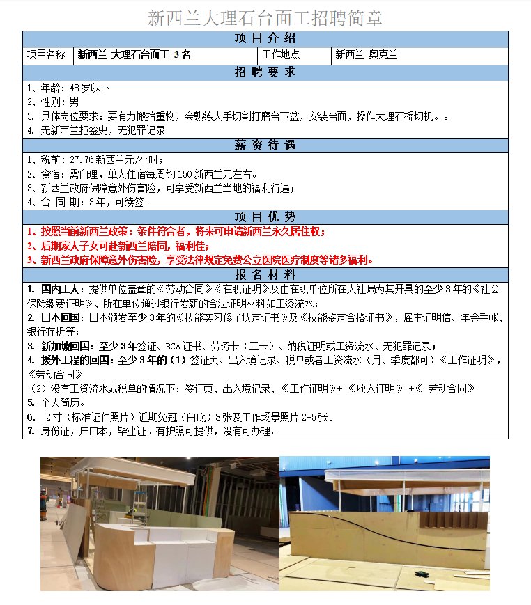 要求45歲以下,男性,會熟練完成噴涂油漆工作,日本回國的優先。稅前27.76新西蘭元/小時。