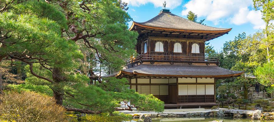 慈照寺是公元15世紀(jì)末,當(dāng)時(shí)日本的最高統(tǒng)治者“足利義政”效仿其祖父曾建造的金閣寺而下令興建的別墅。足利義政死后,根據(jù)他的遺囑,這座別墅被改建成寺院。由于寺院境內(nèi)有一棟被稱(chēng)作“銀閣”的建筑物,所以這座寺院也被稱(chēng)作“銀閣寺”。寺內(nèi)的庭院,具有當(dāng)時(shí)“東山文化”的獨(dú)特風(fēng)格。“東山文化”是日本歷史上的一段輝煌的文化。“銀閣寺”的庭院又被當(dāng)作“東山文化”的典范而聞名。庭院占地面積達(dá)2萬(wàn)平方米。庭院內(nèi)的“觀音殿”、“東求堂”保留了當(dāng)初的原貌,它們均已被指定為國(guó)寶級(jí)文物。國(guó)寶——銀閣、東求堂