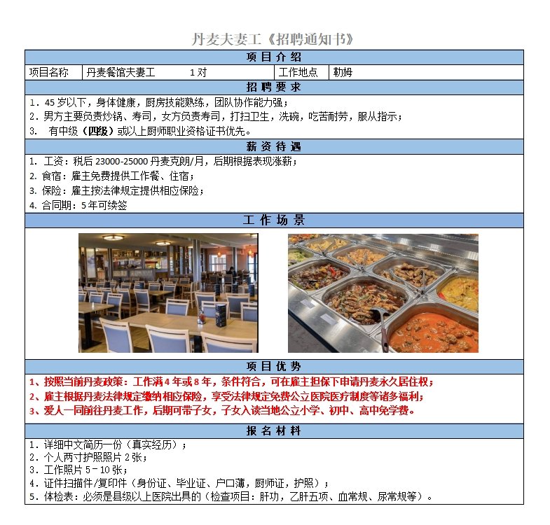 丹麥超高薪夫妻項目來咯!28000丹麥克朗包吃住,餐廳規模大,值得信賴。目前需要兩對夫妻,若單人申請也可考慮。