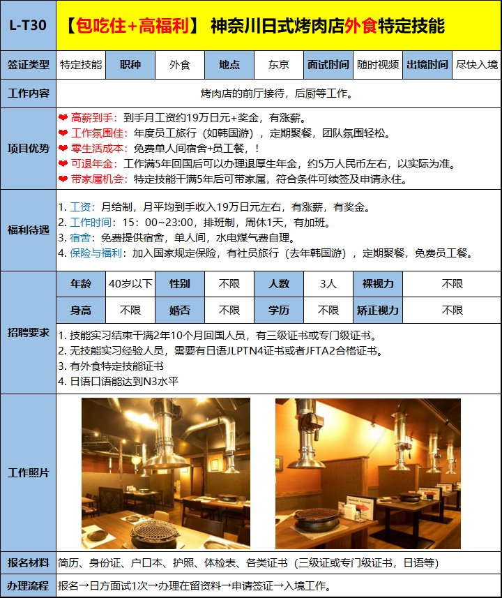 幫廚(無經(jīng)驗也可)、前廳服務(wù),東京有6家烤肉連鎖,分布于新宿,池袋等車站附近,生意非常好,老板是中國人,溝通無障礙。
