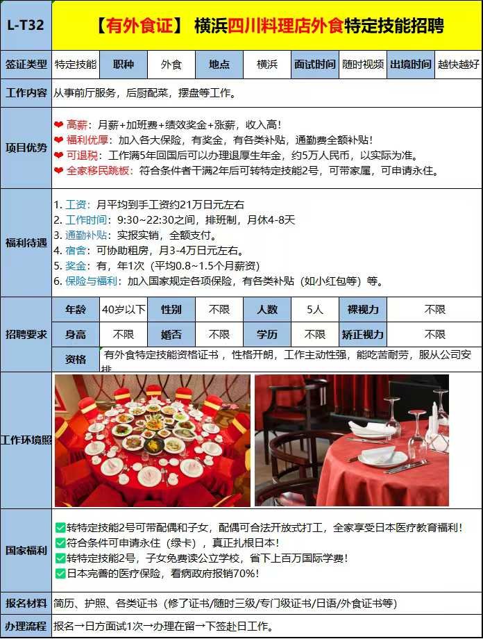 主要負(fù)責(zé)前廳服務(wù)和后廚幫廚(煮面,洗菜、配菜、清洗餐具)。免費(fèi)提供工作餐,有獎(jiǎng)金,有漲薪機(jī)會(huì)。回國后可退厚生年金。符合條件者干滿2年后可轉(zhuǎn)特定技能2號(hào),可帶家屬,可申請(qǐng)永住。