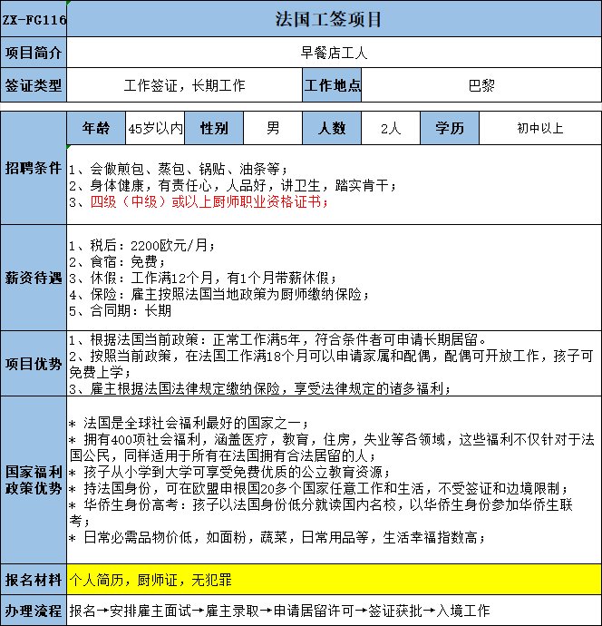 報(bào)名→安排雇主面試→雇主錄取→申請(qǐng)居留許可→簽證獲批→入境工作