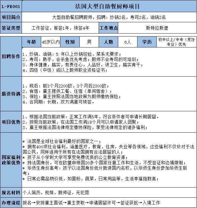 報名→安排雇主面試→雇主錄取→申請居留許可→簽證獲批→入境工作